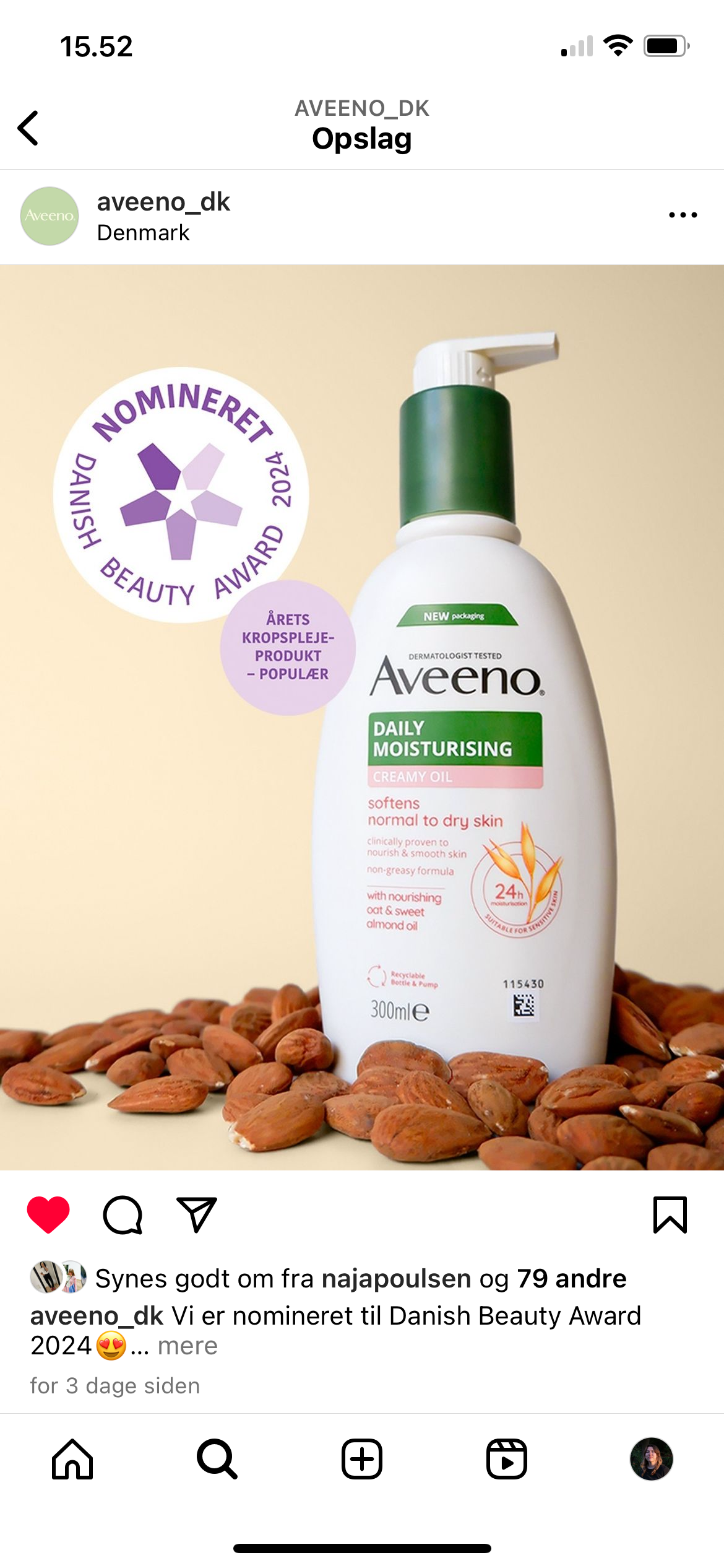 Mit arbejde for Aveeno har fokuseret på at formidle denne filosofi visuelt gennem æstetiske packshots og stemningsfulde billeder til deres sociale medier. Med blik for både brandidentitet og målgruppe har jeg skabt visuelt materiale, der understøtter Aveenos budskab om sund og naturlig hudpleje.